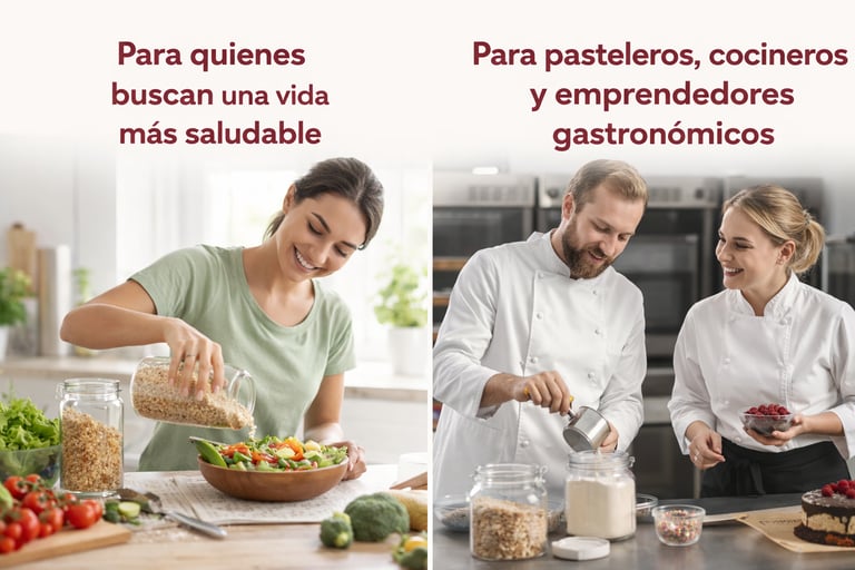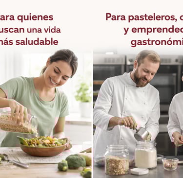 Atendemos a personas que buscan una alimentación saludable, así como a pasteleros, chefs y emprendedores gastronómicos que necesitan ingredientes confiables para sus recetas.